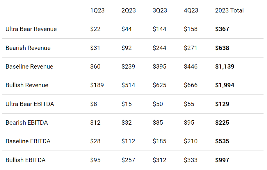 Assuming an underwhelming 12% QoQ growth rate for all other businesses and the bearish case for student loans, 4Q23 revenue would be $880M, a 53% beat. Annual 2023 revenue would be $2.71B. That's an 80% annual growth rate with what I would consider conservative assumptions. That same 12% QoQ growth rate on all businesses combined with the baseline model would result in $3.21B in revenue in 2023, which would be an annual growth rate of 114%. SoFi will handily beat revenue estimates next year.