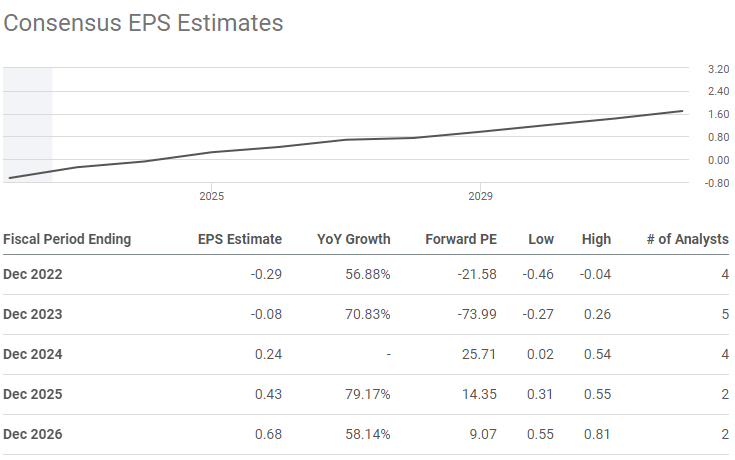 Analyst EPS estimates for SoFi (Seeking Alpha)
