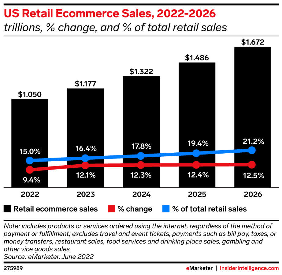 And when looking at longer timeframes, growth expectations are also high – not only for the holiday sales. While retail sales are expected to grow only with a CAGR of 3.70% between 2021 and 2026 (according to Statista), ecommerce sales are expected to grow with a much higher pace (and Amazon is generating most of its sales online). For the years from 2023 till 2026, analysts are expecting ecommerce sales to growabout 12% annually.