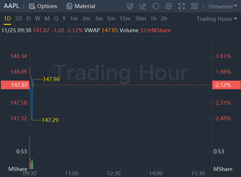 Apple shares dropped 2% in morning trading.