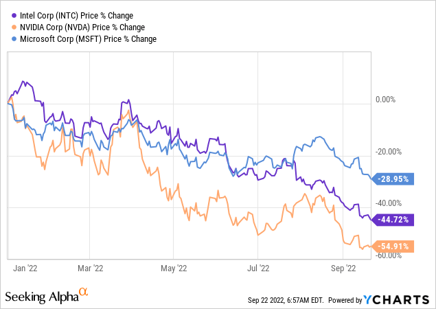 From Intel (INTC) to Nvidia (NVDA) and Microsoft, technology companies with exposure to the PC market have not done well in 2022. Intel, Nvidia and Microsoft have all bled market value this year as PC shipments weakened after the pandemic and inventory buildups threaten to make the supply situation even worse. Microsoft obviously would be hurt by an accelerating down-turn in the PC market, but I believe two factors speak for Microsoft despite the potential for growing revenue headwinds.