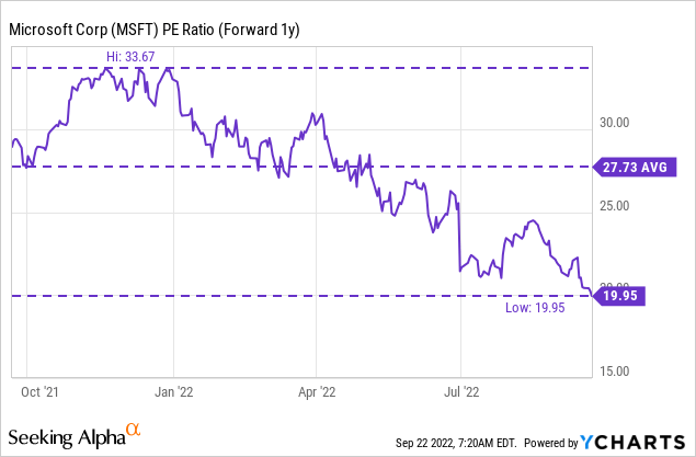 The first factor is that Microsoft's valuation has become compellingly cheap in September as the software company's shares fell to a new 1-year low.