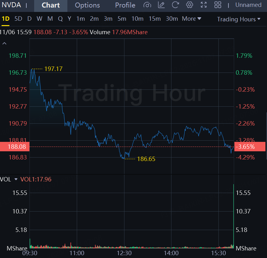 Nvidia (NVDA) stock led the tech sector lower on Thursday, dropping 3.6% after a Trump official said the government had no intention of backstopping the artificial intelligence industry in reference to comments by OpenAI's (OPAI.PVT) CFO.