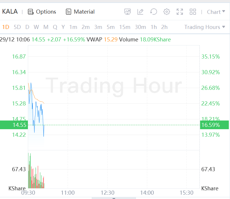 Shares of Kala Pharmaceuticals Inc. (KALA) shot up 16% in morning trading, after the biopharmaceutical company said the Food and Drug Administration accepted its investigational new drug (IND) application for KPI-012, its treatment of persistent corneal epithelial defect (PCED).