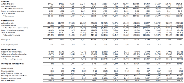 Source: Author, with data from our internal financial forecasts (Tesla_-_Forecasted_Financial_Information.pdf).