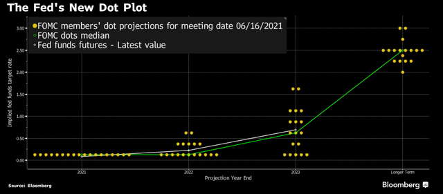 Based on Tesla’s current debt maturity profile, the company will likely be refinancing a large portion of their debt coming due between 2022 and 2025 in order to support their ongoing capex needs on the construction of new manufacturing plants, as well as R&D spending on technological advancements related to battery cells and autonomous driving. The potential refinancing timeline also coincides with the projected timeline of federal fund rate hikes based on the FOMC’s latest meeting on June 16th.