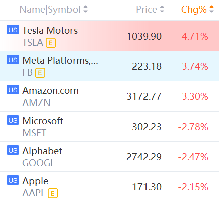 Apple, Tesla, Amazon, Microsoft, AMD and Meta Platforms dropped between 2% and 5%.