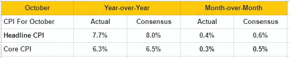 Excluding volatile food and energy costs, so-called core CPI increased 0.3% for the month and 6.3% on an annual basis, compared to respective estimates of 0.5% and 6.5%.