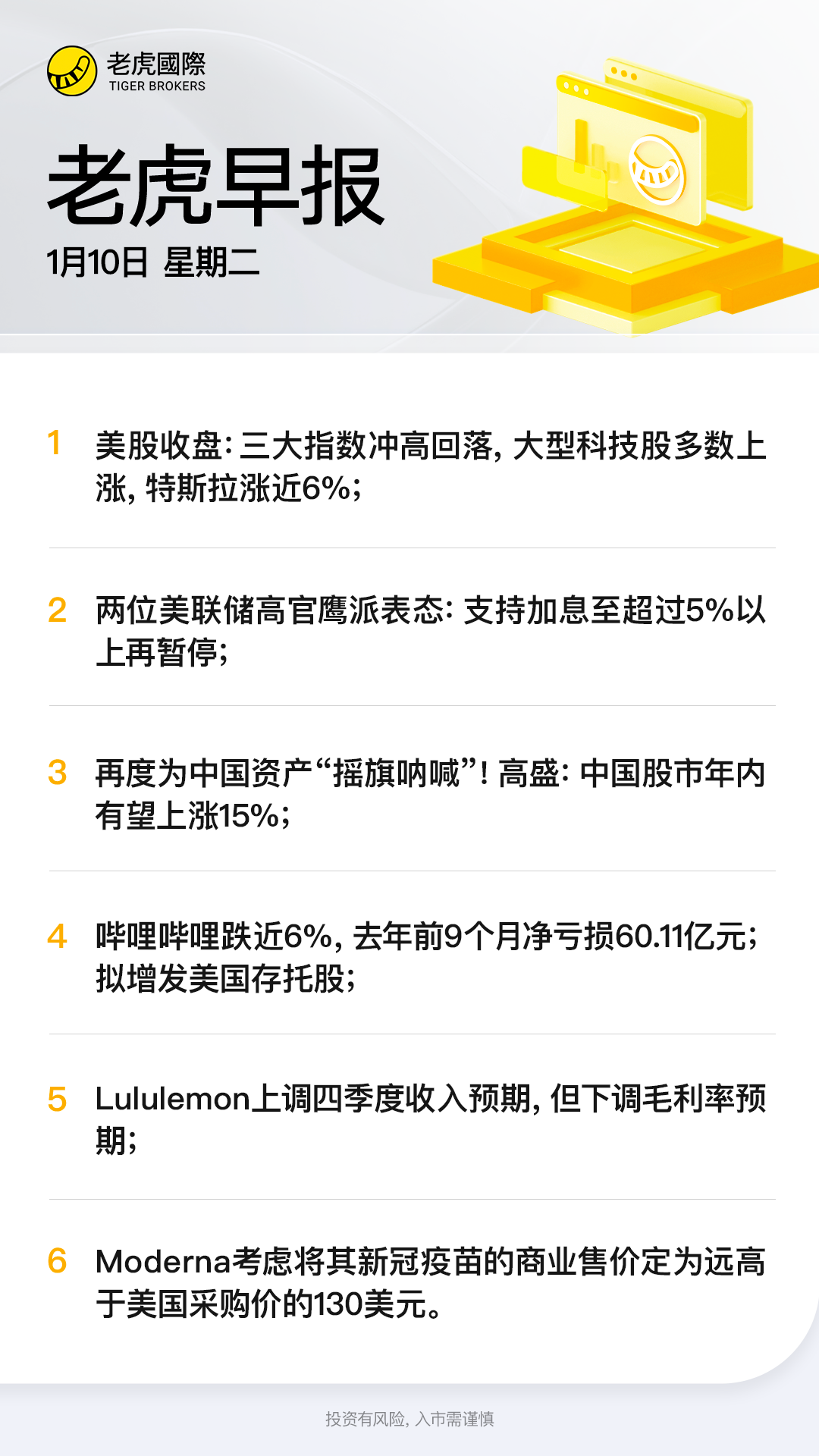 1、美联储官员再泼冷水美股冲高回落仅纳指收涨特斯拉涨近6%