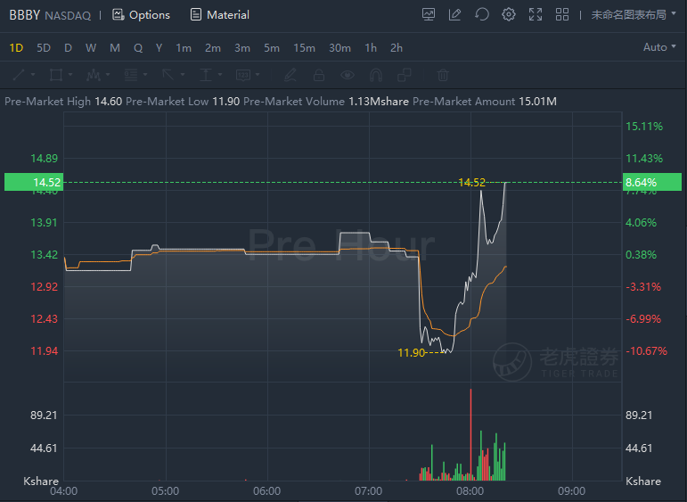Bed Bath & Beyond soared over 8% in premarket trading though it missed on revenue.It reported quarterly losses of $(0.25) per share. This is a 412.5 percent decrease over earnings of $0.08 per share from the same period last year. The company reported quarterly sales of $1.88 billion which missed the analyst consensus estimate of $2.00 billion by 6.10 percent. This is a 28.27 percent decrease over sales of $2.62 billion the same period last year.