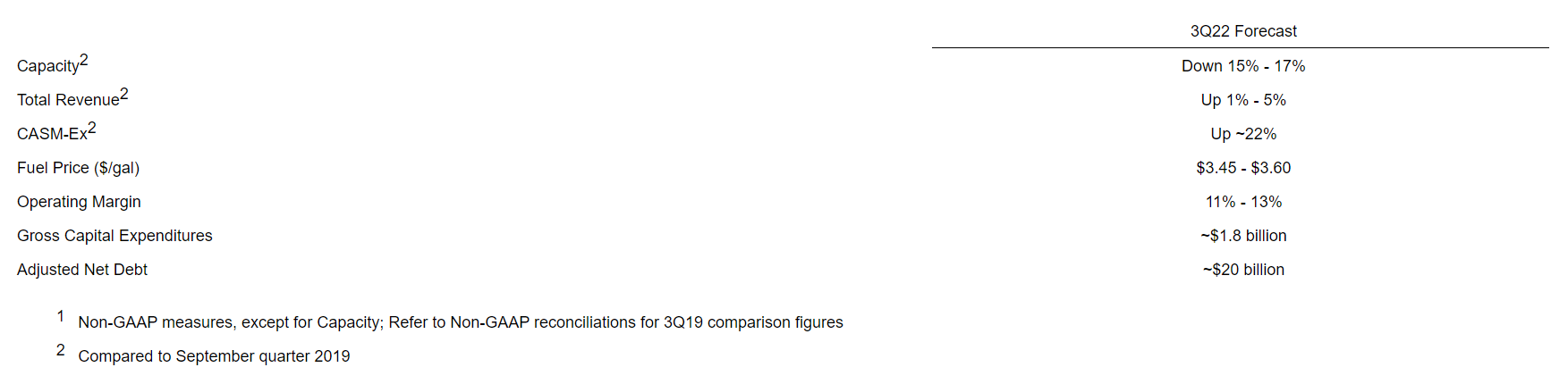 - Q3 Outlook: Capacity to be down ~15% to 17% vs. 3Q19; Total Revenue to grow by 1% to 5% vs. 3Q19; Adjusted Net Debt of ~$20B down from Q2 net debt of $19.6B.
