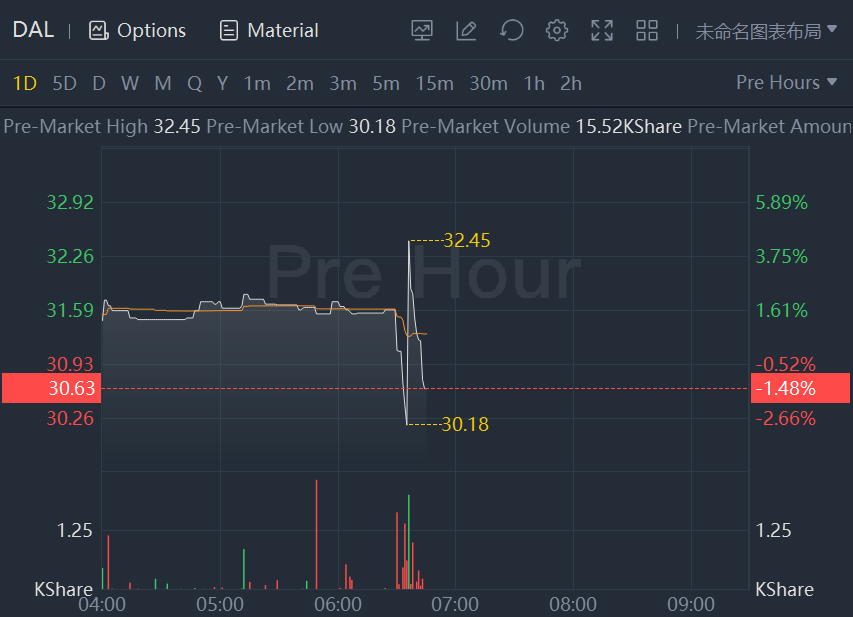 Delta Air Lines shares dropped more than 1% in premarket trading.