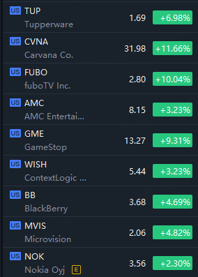 Meme stocks rallied in morning trading with Carvana and Fubo TV soaring over 10%.