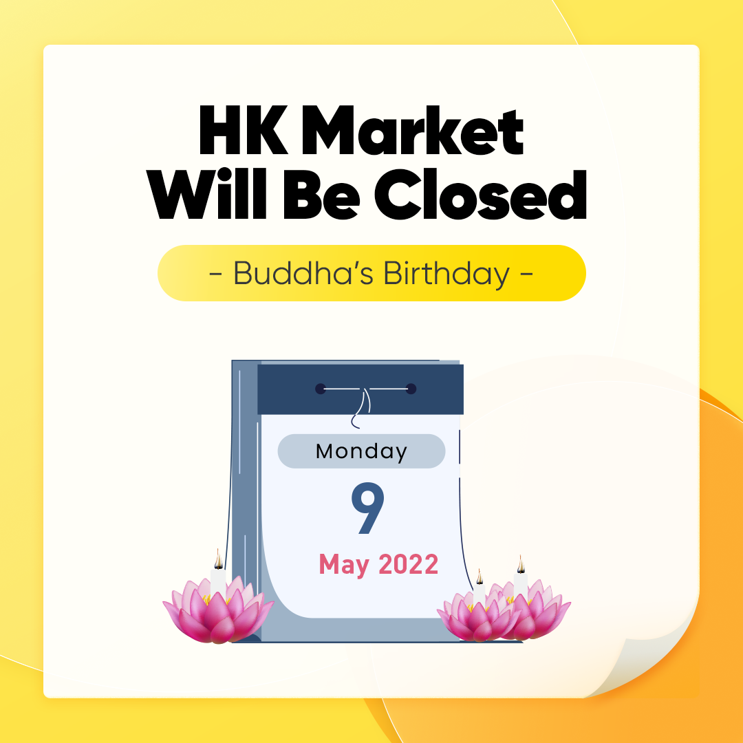 The Hong Kong market will be closed on Monday, 9 May 2022 due to Buddha's Birthday celebrations. Please consider any trading restrictions that might apply during this holiday period and make the necessary preparations in advance.