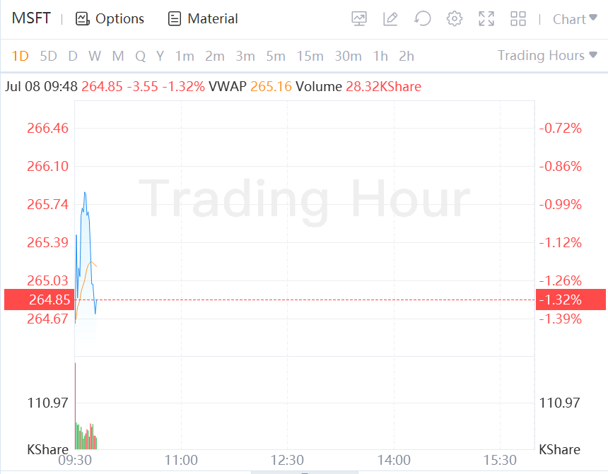 Microsoft (MSFT) shares fell 1.32% to $264.85 in early trading.