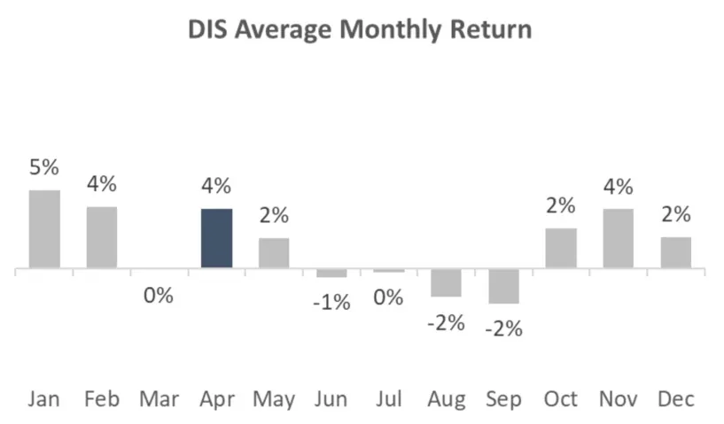 Looking at the stock since its IPO, DIS performs best in months near the end and beginning of each year. Even so, April is one of the only months through October that DIS shows a positive average return.