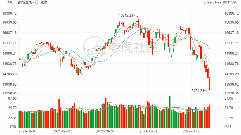 隔夜美股收盘,科技股雪崩,纳指连跌四日,收跌385.10点,跌幅2.72%,报13768.92点,创七个半月来新低记录,也是自从去年6月9日以来首次收盘失守14000点。