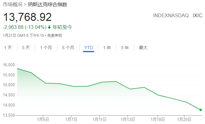 自从进入2022年以来,纳指画风突变,开始加速下跌,全周累跌7.6%,创2020年10月来最差单周表现。