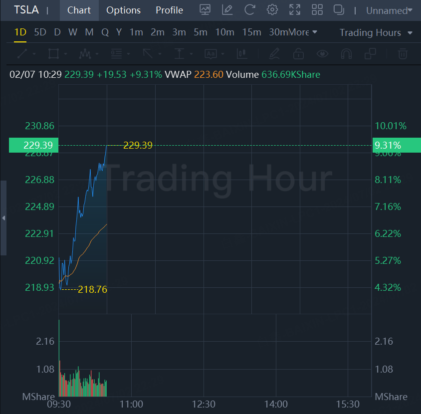 The world's most valuable automaker's shares surged over 9% in morning trading.