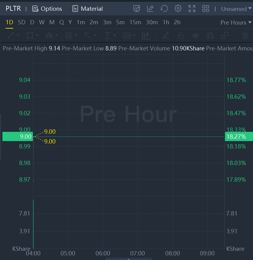 Palantir Technologies was up more than 18% in premarket trading.The company reported EPS of $0.04 on revenue of $509.0 million, topping Wall Street estimates for EPS of $0.03 on revenue of $503.1M.