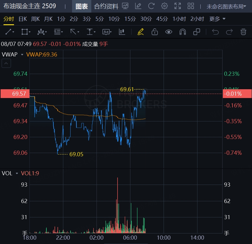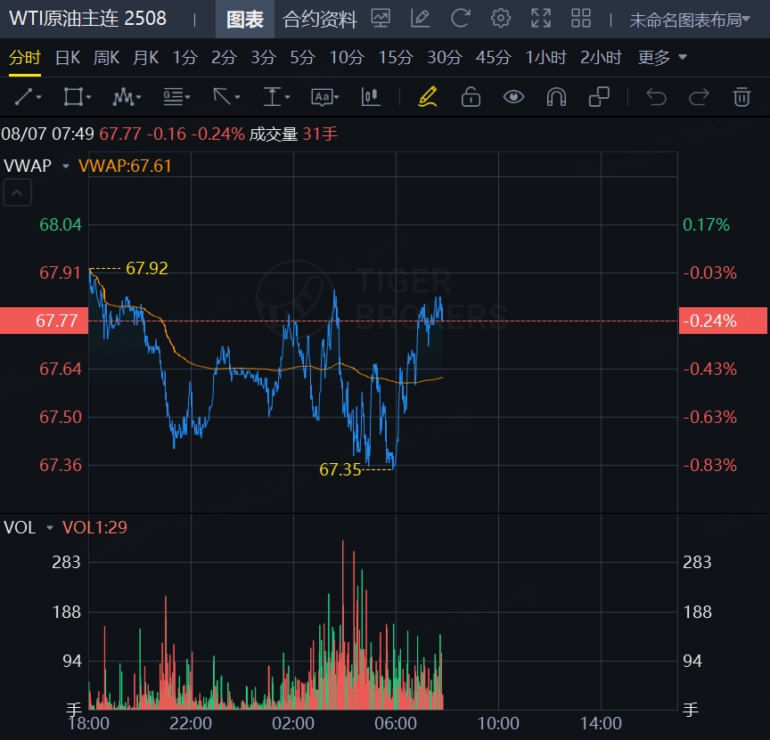 原油期货弱势震荡,截止发稿,WTI原油跌0.24%,报67.77美元/桶;布伦特原油跌0.01%,报69.57美元/桶。