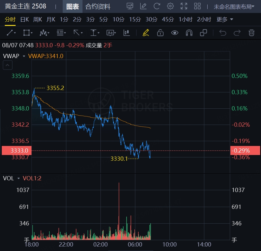 黄金期货小幅走低,截止发稿,跌0.29%,报3333美元/盎司。