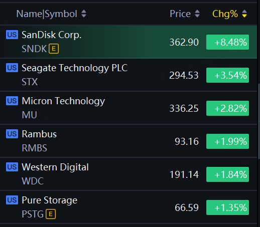Storage shares jumped on Friday. SanDisk up over 8%; Seagate Tech, Micron up about 3%; Rambus, Western Digital up about 2%.