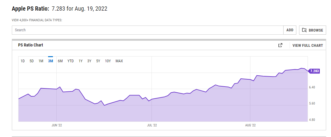 The two biggest market cap stocks in the NASDAQ 100 (QQQ) are Apple (AAPL) and Microsoft (MSFT). Both reached the highest multiples on a Price/Sales basis over the past three months before softening. Plus having 2 trillion-dollar plus market cap companies trading at such lofty valuations seems extreme unto itself. Further upside seems limited at best.
