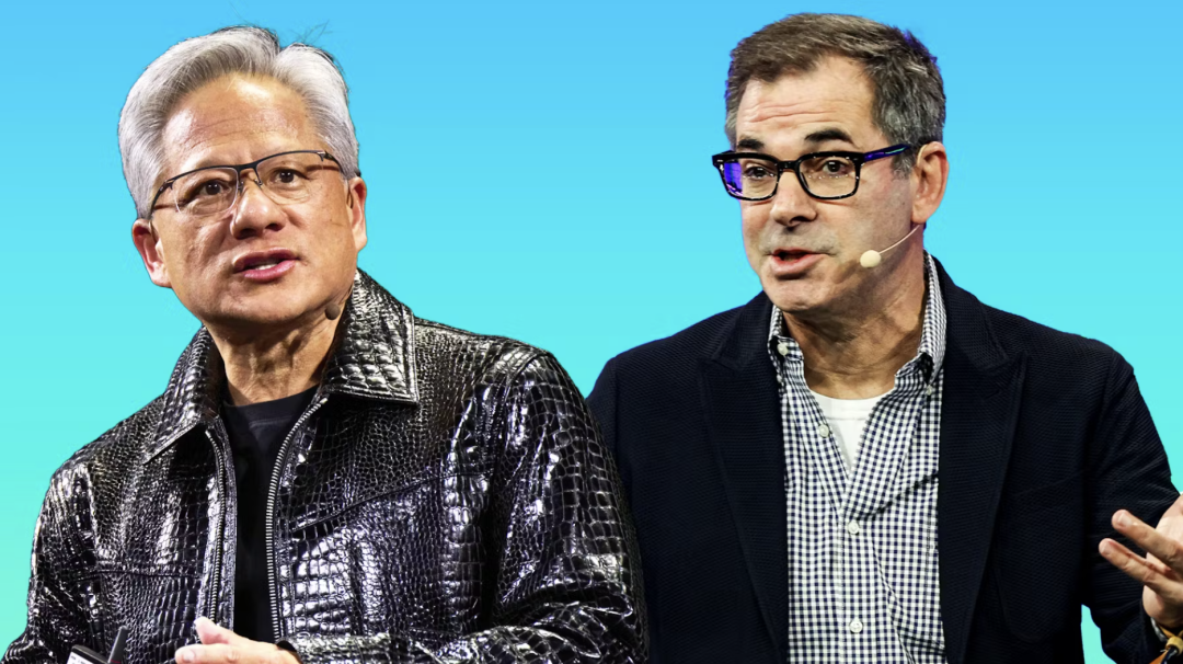 ▲从左至右:黄仁勋、CoreWeave首席执行官迈克尔·因特罗托(Michael Intrator)(图源:The Information)