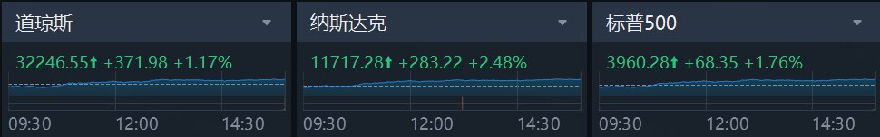 美东时间周四,美股市场低开高走,11家华尔街大行联手救助第一共和银行的消息传出后,市场情绪显著提振,截至收盘,道琼斯指数涨1.17%,报32246.55点;标普500指数涨1.76%,报3960.28点;纳斯达克指数涨2.48%,报11717.28点。
