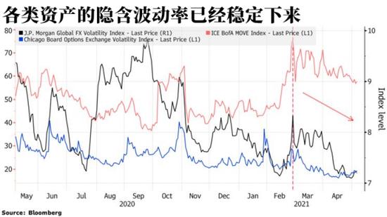 在2月底小幅上涨后,衡量货币、国债和美国股市隐含波动性的指标有所回落,这表明投资者认为美联储不会立即宣布削减购债。但期权市场交易活动表明,8月份在Jackson Hole举行的央行行长年会或许是讨论收紧购债计划的开始。