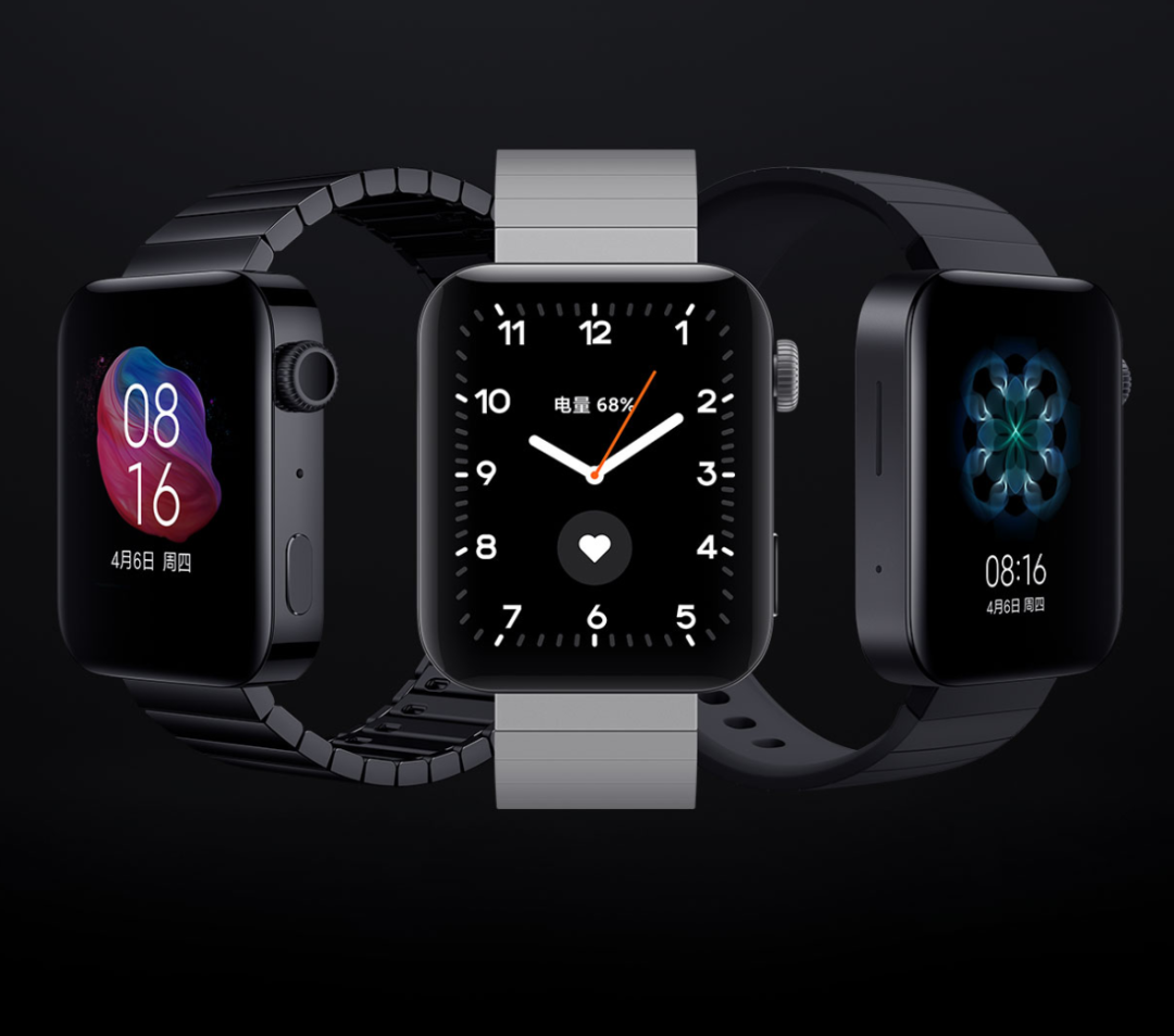 小米手表发布于2019年11月5日,采用1.78英寸AMOLED方形大屏,44mm表盘像素密度为326PPI精细显示,大小男女适用。