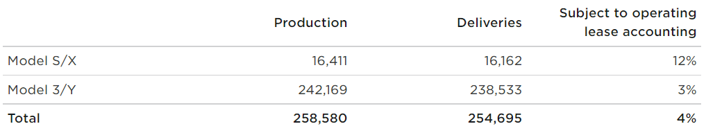 Tesla said it delivered 238,533 Model 3 compact cars and Model Y sport-utility vehicles, as well as 16,162 of its Model S and Model X vehicles to customers in the quarter.