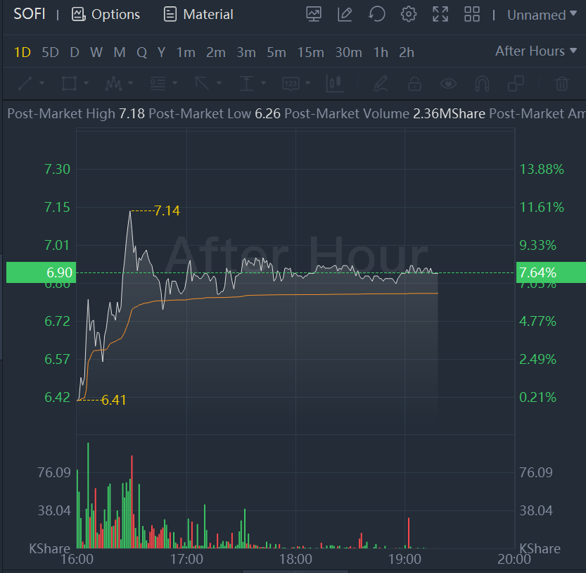 Shares of SoFi Inc. were up nearly 7.64% in after-hours trading Tuesday after the company beat expectations with its latest results and delivered an upbeat earnings forecast for the current quarter.The company reported a second-quarter net loss of $95.8 million, or 12 cents a share, whereas it recorded a loss of $165.3 million, or 48 cents a share, in the year-prior quarter. Analysts tracked by FactSet were modeling a 14-cent GAAP loss per share for the latest quarter.