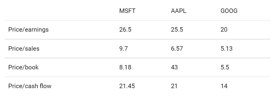 - Because they have multiple growing segments instead of one, I consider Apple and Google better than Microsoft.