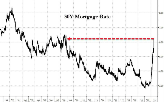 伴随着美联储政策持续收紧,美国最受欢迎的住房贷款平均利率自2008年以来首次升至6%以上。