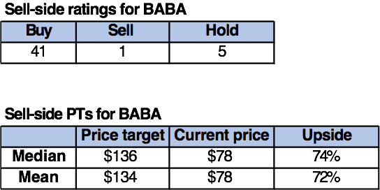 Wall Street is overwhelmingly buy-rated on the stock. Of 47 analysts covering the stock, 41 are buy-rated, five are hold-rated, and the remaining are sell-rated. The stock is trading at $78. The median and mean price targets are set at $136 and $134, respectively, with a major potential upside of 72-74%.