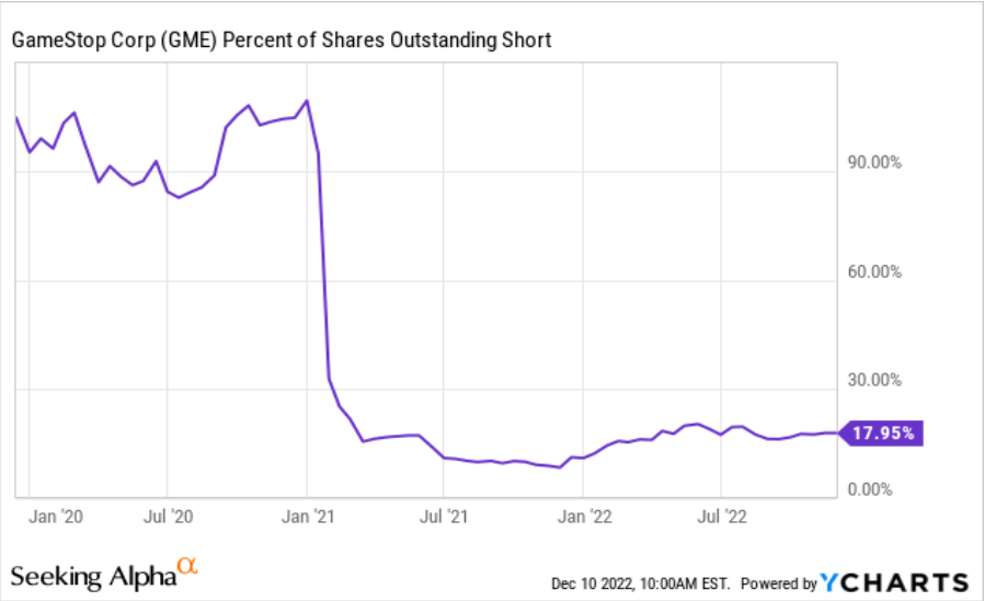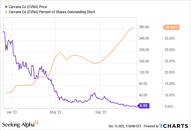 High short interest is not necessarily a contraindicator either. Carvana Co. (CVNA), another darling of the meme crowd, is a testament to that. Short interest hit 20% of float in May 2022.