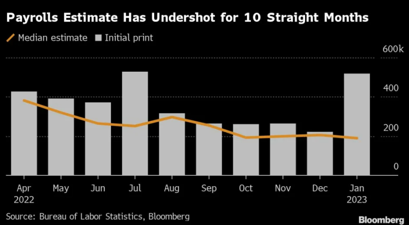 美国非农就业人数增长已连续10个月超过市场预期,这是数十年来持续时间最长的一次。如果这一趋势继续延续下去,将加大美联储继续加息的压力。