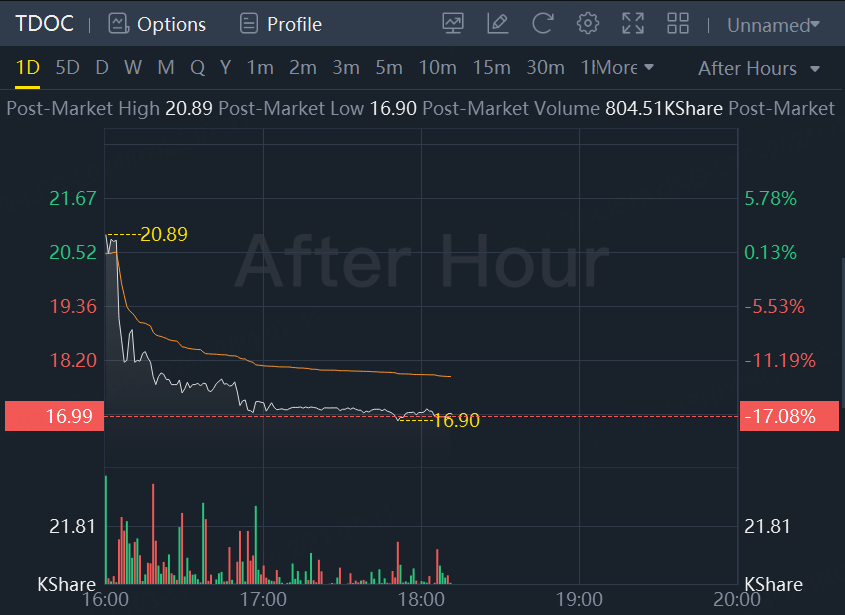 Shares of telehealth-technology provider Teladoc Health Inc. sank after hours on Tuesday following a largely downbeat forecast for the first quarter and full year.