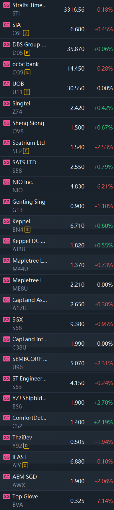 During the day, the benchmark Singapore Strait Times Index ranged between 3,297.98 and 3,320.14, ending 0.18% or 6.06 points lower at 3,316.56.