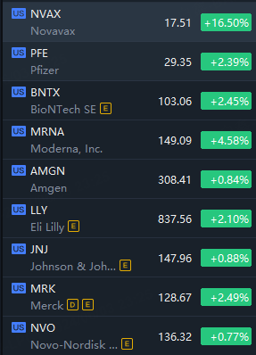 Shares of vaccine maker Novavax rise 16% to $17.5 in morning trading.
