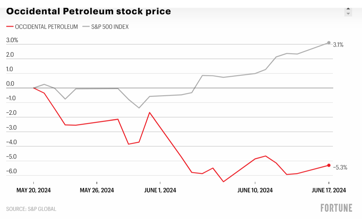 Warren, the Morningstar analyst, said Occidental’s appeal is instead driven by Buffett’s desire to diversify his portfolio, and the fact that Berkshire Hathaway already has regulatory approval to scoop up more shares in Occidental. "The stuff that Berkshire buys in scale like this is more a function of what they can buy as opposed to huge preferences one way or another,” he told Fortune. “Their opportunity set is somewhat limited by the size of their portfolio.”