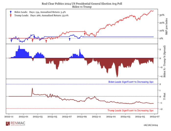 A good place to start is to look at how the market has reacted so far to swings in the race between Biden and his Republican challenger, former President Donald Trump.