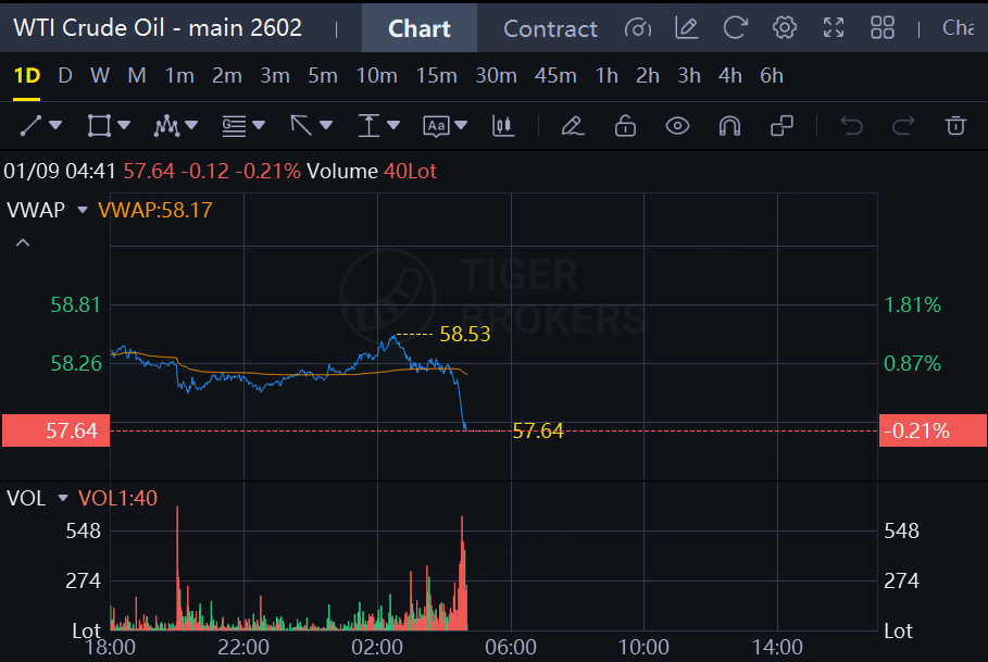 Oil futures slid on the news. WTI crude oil futures fell 0.21% to $57.64 a barrel; Brent oil futures fell 0.18% to $61.88 a barrel.
