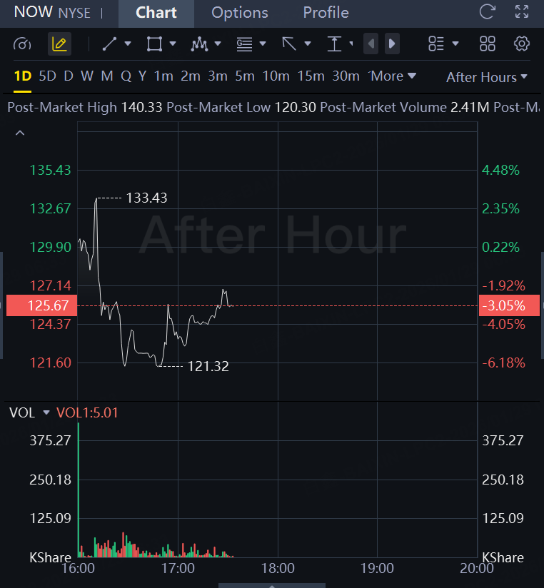 ServiceNow shares dropped 3% in after hours trading.