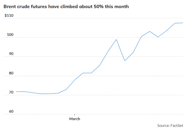 Prices for U.S. and global oil have both tested $100 a barrel since the conflict began in late February, their highest levels since Russia invaded Ukraine in 2022. Global prices have outpaced gains in domestic crude. This month through Thursday, WTI oil (CL.1) climbed 43% to about $96 a barrel, while Brent crude (BRN00) rallied 50% to $109, according to Dow Jones Market Data.