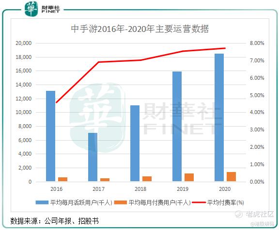 運營數據方面,中手遊用戶數量在2020年穩健提升。年內,公司遊戲新註冊用戶總數破億,達到1.02億人,同比增長18.6%;平均每月活躍用戶1848.3萬人,同比增長16%;月付費用戶達141.4萬人,平均付費率爲7.7%,同比增長0.2個百分點。