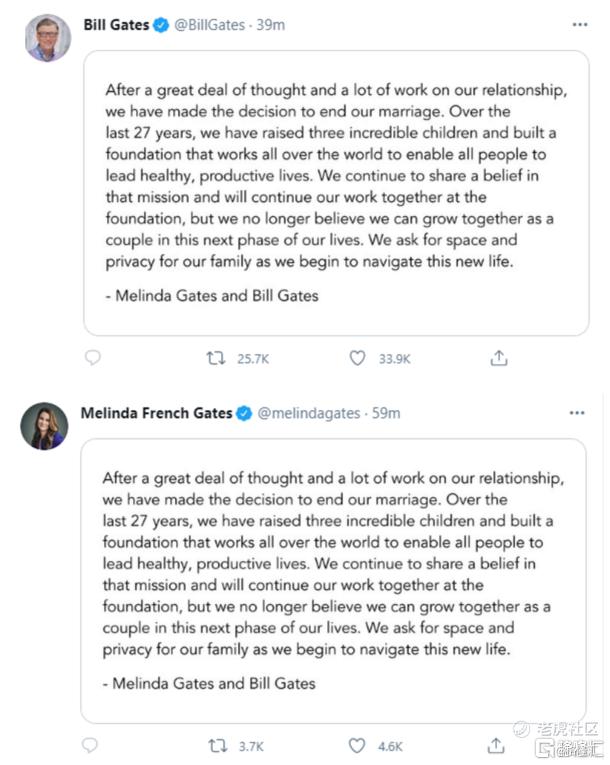 在二人昨晚的官宣離婚的聲明中,雙方共同表示,27年的婚姻,他們共同孕育了三個出色的子女,未來他們選擇分開,是因爲再繼續生活下去的婚姻狀態,不會讓彼此變得更好。