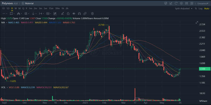 1. $Polynovo(PNV.AU)$ rebounded 10.32% after the continuous decline